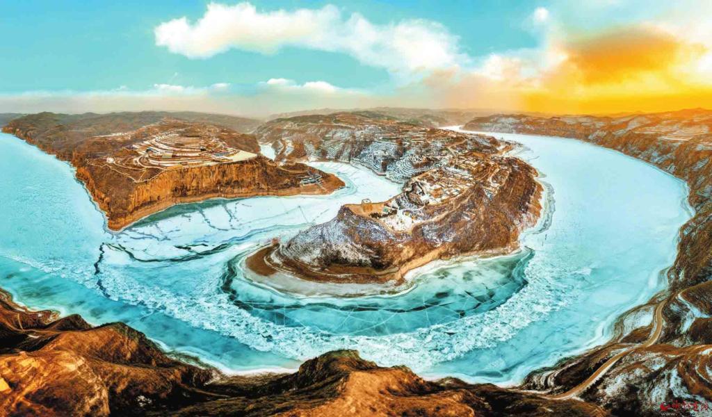 隆冬时节偏关老牛湾被冰雪覆盖