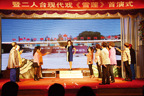 近日,由河曲县委宣传部组织策划推出的二人台现代戏《雪莲》首演获得圆满成功,干部群众反响热烈。图为演出剧照。(张健 摄)