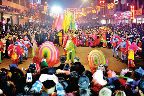 没有了往年的大型彩门,没有了往年的大型彩车,也没有了往年的大型文艺队伍,但彩灯仍然亮起来了,旺火仍然燃起来了,鼓乐也响起来了,人群也聚起来了,礼花也打起来了……2016年繁峙县的元宵节是在一片节俭氛围中进行的,虽然声势规模小了,但元宵节的氛围依然浓厚,人们欢乐的笑声仍然在街道上荡漾,繁峙人民过了一个节俭简约、文明健康的元宵佳节。(李晓军 摄)