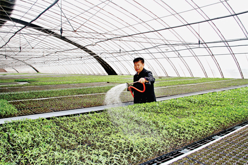 3月21日,原平市双惠现代农业科技示范园区内,工作人员正在育苗标准化车间进行育苗和管理。“冬季行动”开展以来,该市大力发展科技农业,加大农业结构调整力度,通过政策扶持、示范引导、科技帮带等多种形式,让传统农业与现代化农业有效对接,使农民学会了科学种田,走出了一条特色化农业发展的新路子。(褚震 摄)