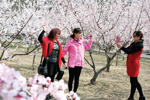 春回大地,万物复苏。三月三十一日,原平市桃花园内,市民尽情赏花拍照,留住春光,留住美好的瞬间。(赵春晓 摄)