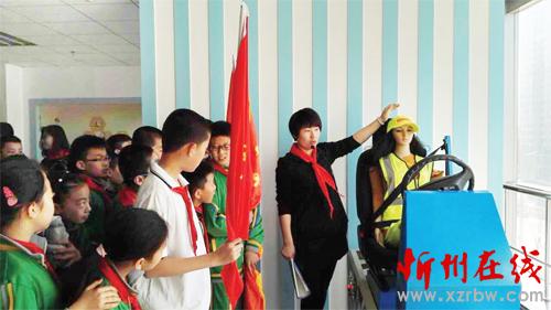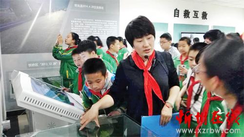 4 月10 日,团市委利用双休日组织市实验第二小学的学生参观了市道路交通安全宣传教育基地,市公安局交警支队专职宣传民警带领小学生参观了各个展区、体验区,进行了交通安全体验,进一步提升了小学生们的交通安全意识。图为小学生分别在自救互救、红绿灯和安全带碰撞体验区,认真听取民警的讲解和进行亲身体验。(董健男 摄)