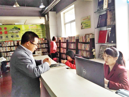 据市新华书店“ 千千静读”平台的工作人员介绍,平台成立1 年以来,已发展会员600 余人,累计藏书已达5000 余册,其中社会捐赠2200 册。现在每到周末,各个年龄层次、各行各业的阅读爱好者不约而同来到这里,如痴如醉地在书海中徜徉,假日多了个好去处,大家不禁为政府组织的公益活动点赞。图为市民正在“千千静读”平台借阅图书。(张志远 孙明 摄)