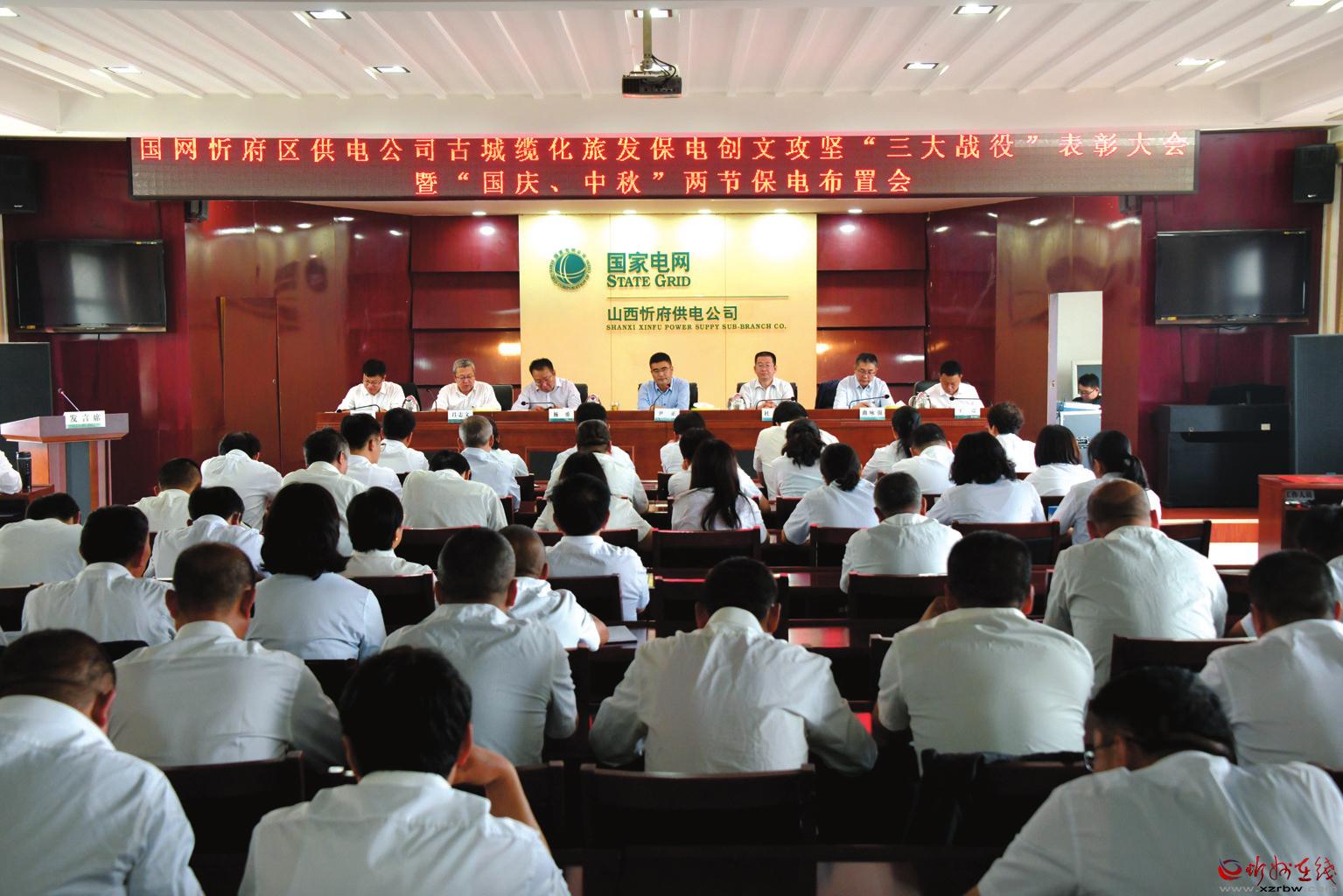 9月25日,国网忻府供电公司召开古城缆化、旅发保电、创文攻坚“三大战役”表彰大会暨国庆、中秋“两节”保电布置会。会议表彰了古城缆化、旅发保电、创文攻坚“三大战役”中的先进班组和个人,并就“两节”保电工作进行了安排部署。会议要求,要严格人员到岗到位劳动纪律,强化24小时值班制度,检查备品备件及抢修车辆的保养情况,切实保障节日期间安全供电。图为会议现场。 赵晨善 摄