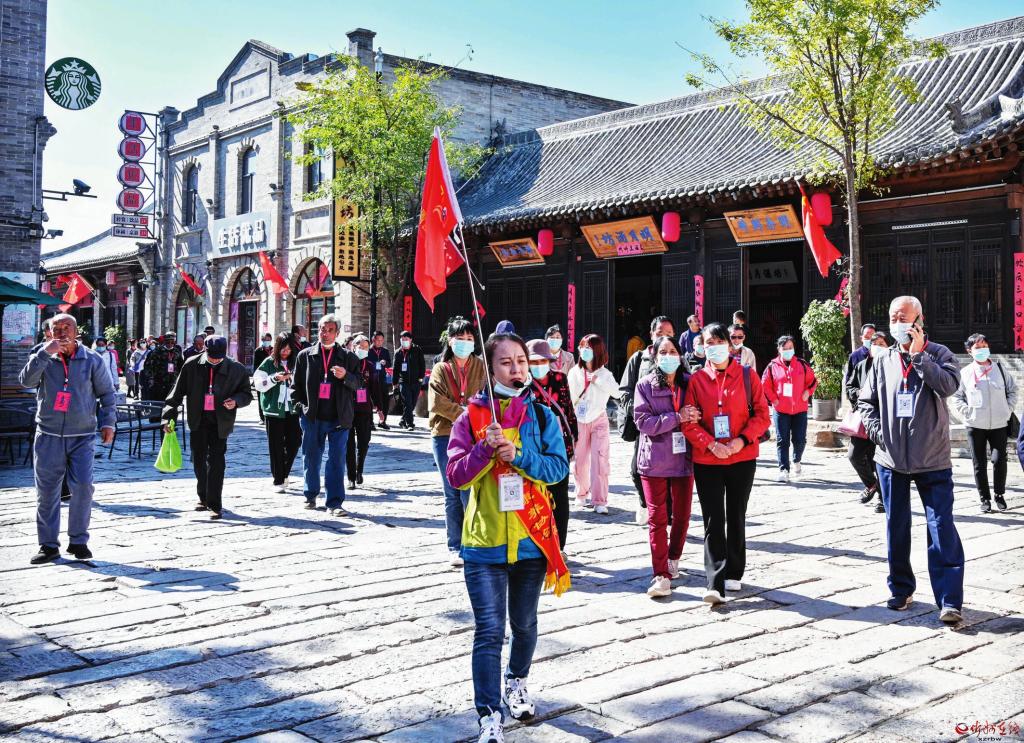 老人们首先来到忻州古城东城门下,换乘观光车环绕古城游览,并观看了大型情景剧《遇见秀容》。听着演员们的生动讲述,一个个老故事勾起了大家对往昔峥嵘岁月的回忆和对现在和平生活来之不易的感叹。随后,老人们来到了云中河景区冰雪运动中心、房车营地,宽敞整洁的道路,漂亮的景观,怡人的休闲娱乐环境令老人们赞不绝口,大家为家乡日新月异的变化而感到自豪与欣慰。在貂蝉故里文化园,老人们一边品尝家乡特色美食,一边观看北路梆子一团的助兴演出。志愿者们还准备了“重阳糕”邀请大家一同品尝,一起分享甜蜜、欢乐和福气,给整场活动带来了浓浓的节日氛围,老人们的脸上也洋溢起了幸福的笑容。