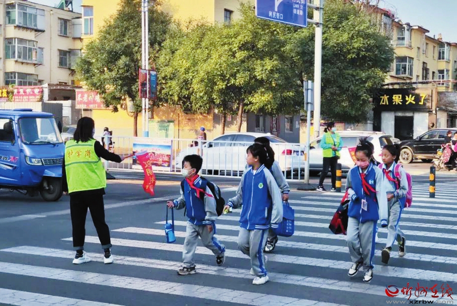 “您好!这里不能调头。”“这里不能停车,请配合!”学校放学时正值交通高峰期,护童督导队的队员们分布在学校周边各个路口,细心引导着过往车辆缓慢通行。他们用实际行动传递爱的力量,也在潜移默化中影响着周围的人,家长停车时注意停放位置,路过的车辆主动放慢车速,大家共同维护校外交通环境。 (本报通讯员 摄影报道)