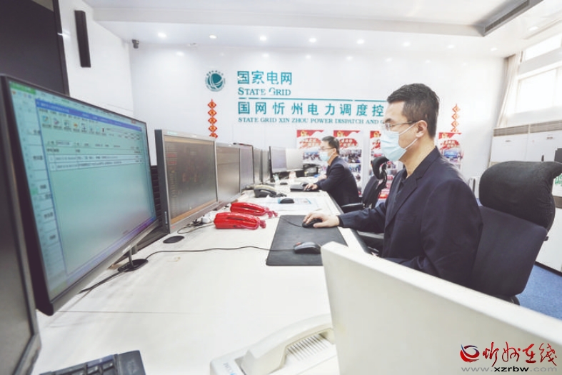国网忻州供电公司广大干部员工深入学习贯彻党的二十大精神,心无旁骛、干事创业,勇担使命保供电,提质增效优服务,为复工复产企业提供可靠用电保障。图为该公司调控中心员工认真监控负荷增长情况。 (马亚运摄)