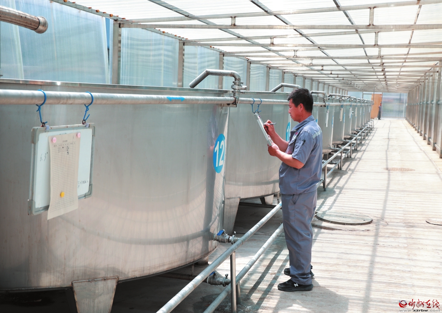 7月17日,五台现代农业产业示范区东雷片区产业园的福源食品有限公司晒棚里,工人正在记录晾晒数据。该企业坚持采用当地优质的水源和原料,通过传统古法酿造,生产无污染、无添加的产品,确保消费者吃到健康、营养的陈醋。(记者张存良摄)