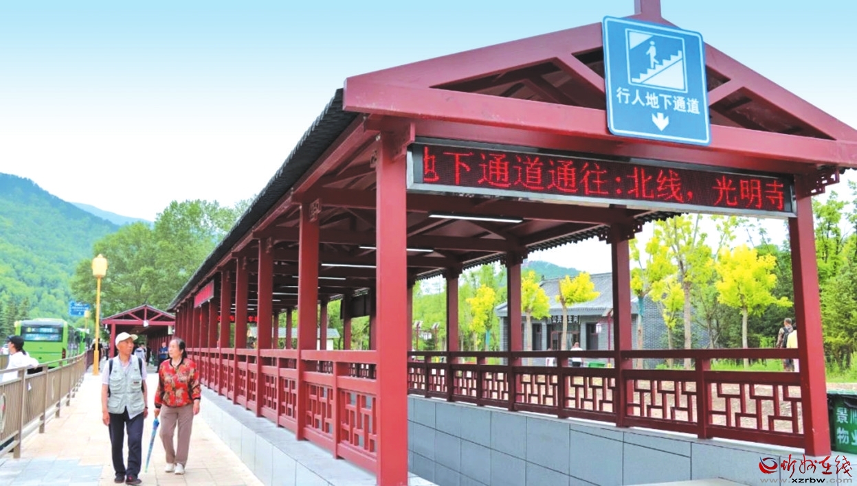 据了解,殊像寺通道全长25.70米,建筑面积541平方米;黛螺顶通道全长52.30米,建筑面积672平方米,净宽均达6米。工程严格遵循高标准规划,涵盖通道主体结构、排水系统、照明设施及市政综合管线改造等核心内容。地面采用防滑地砖铺设,配套完善下水道排水系统,确保雨雪天气人们通行安全。通道出入口与公交站点无缝衔接,并设有无障碍通行缓坡,为携带行李或行动不便的游客提供便捷,实现“下车即达、过街即乘”的“零距离”换乘体验。