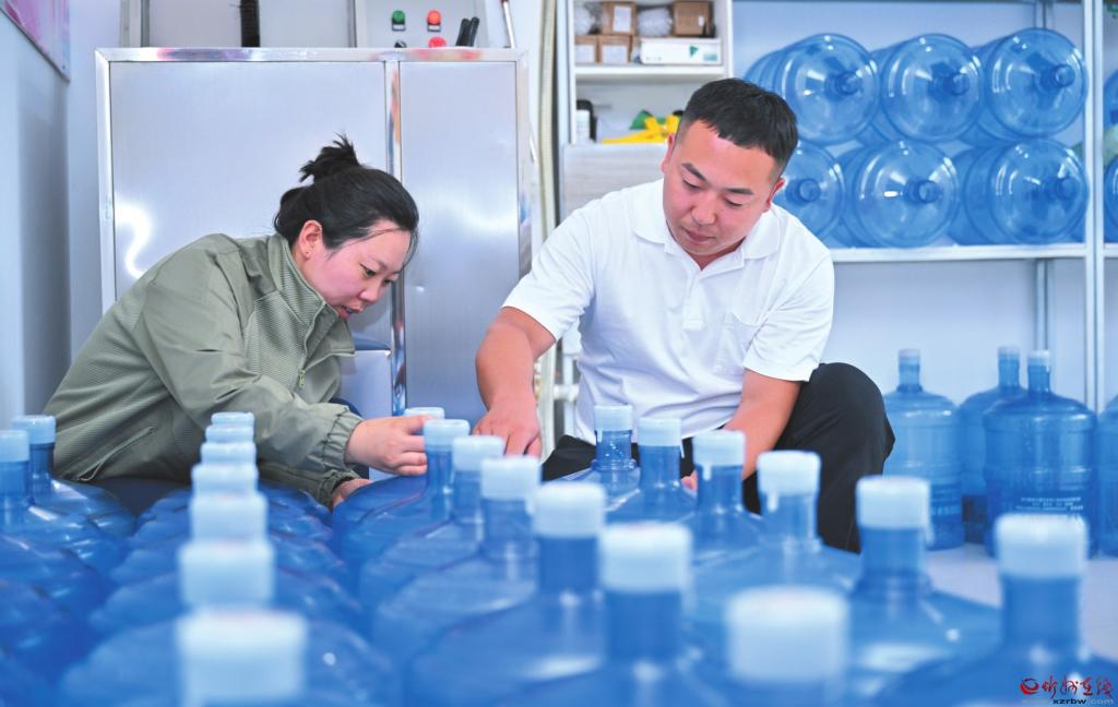 退伍军人武靖返乡创业,在偏关县创办“武哈哈”纯净水公司,以军人标准严控水质,让家乡父老喝上了健康、放心的优质饮用水,以实际行动助力乡村振兴。 (