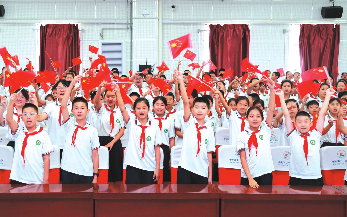 忻州市七一路小学学生观看纪念大会。张存良摄