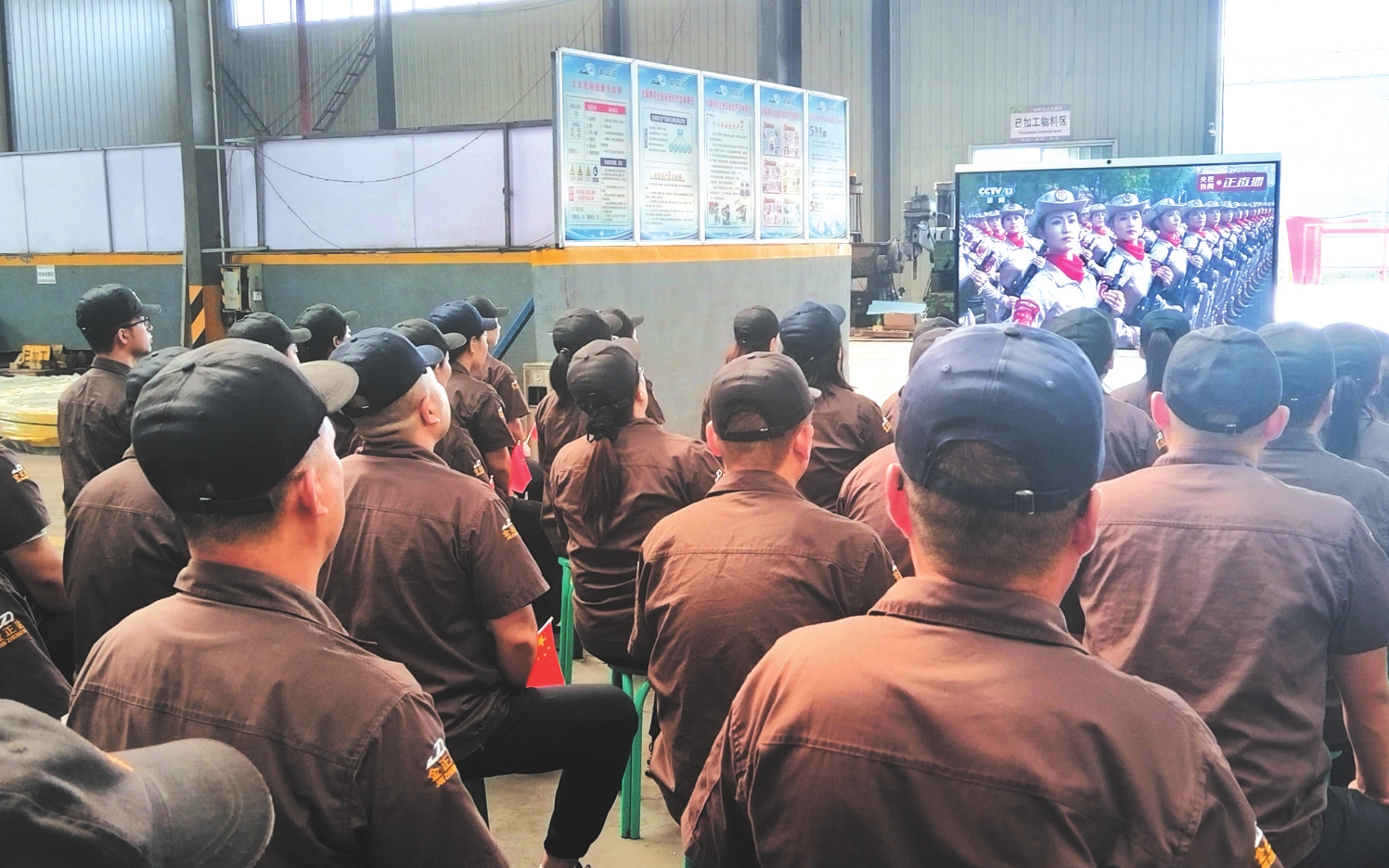 山西金正达金属制品有限公司员工观看纪念大会。刘婧摄