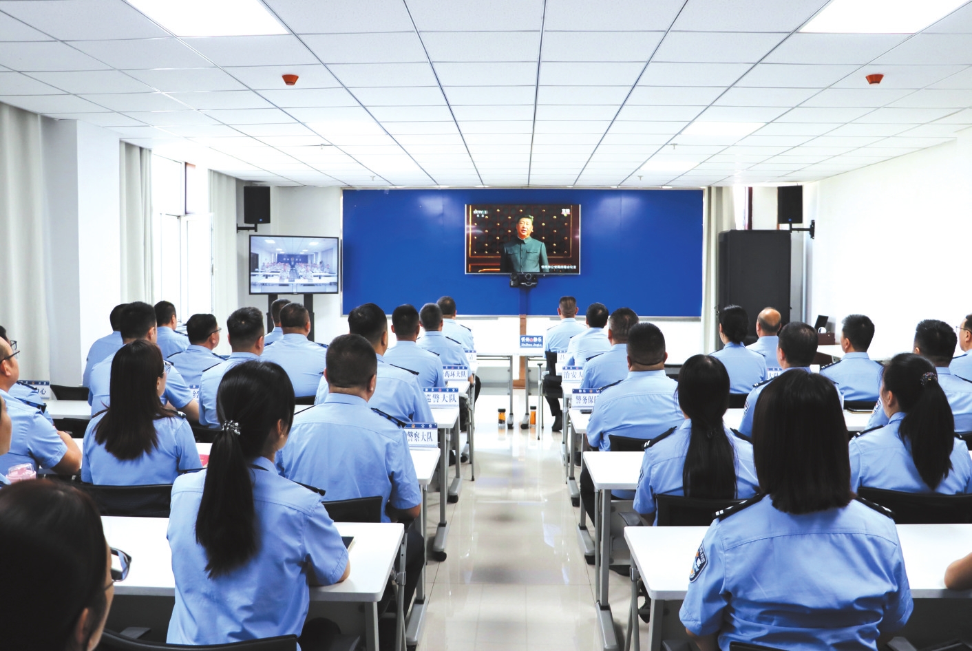 静乐县公安局干警观看纪念大会。乔秀乾摄