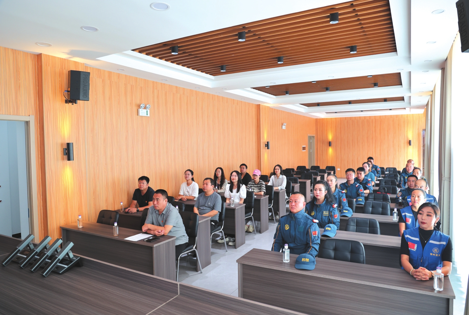 繁峙县党群服务中心干部职工和繁峙县蓝天救援队队员一同观看纪念大会。李文浩摄