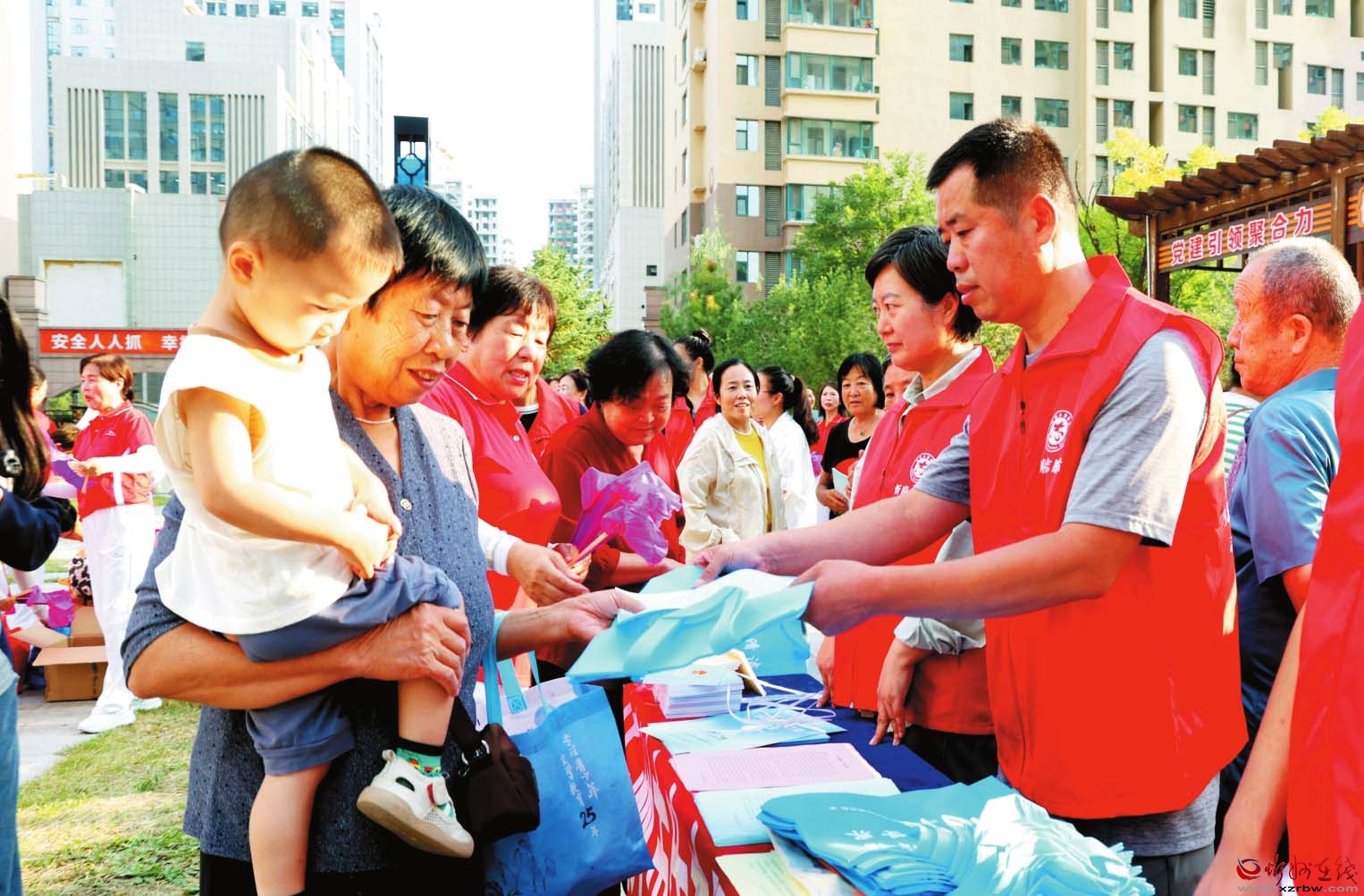9月12日,由省生态环境厅、省妇联联合主办,市低碳协会承办,市生态环境局、忻府区委宣传部、忻府区妇联、市生态环境局忻府分局协办的“美丽中国志愿有我——生态文明进社区”活动在忻州城区泛华城市广场举行。图为环保志愿者向市民发放低碳环保宣传资料。 (记者 范琛摄)