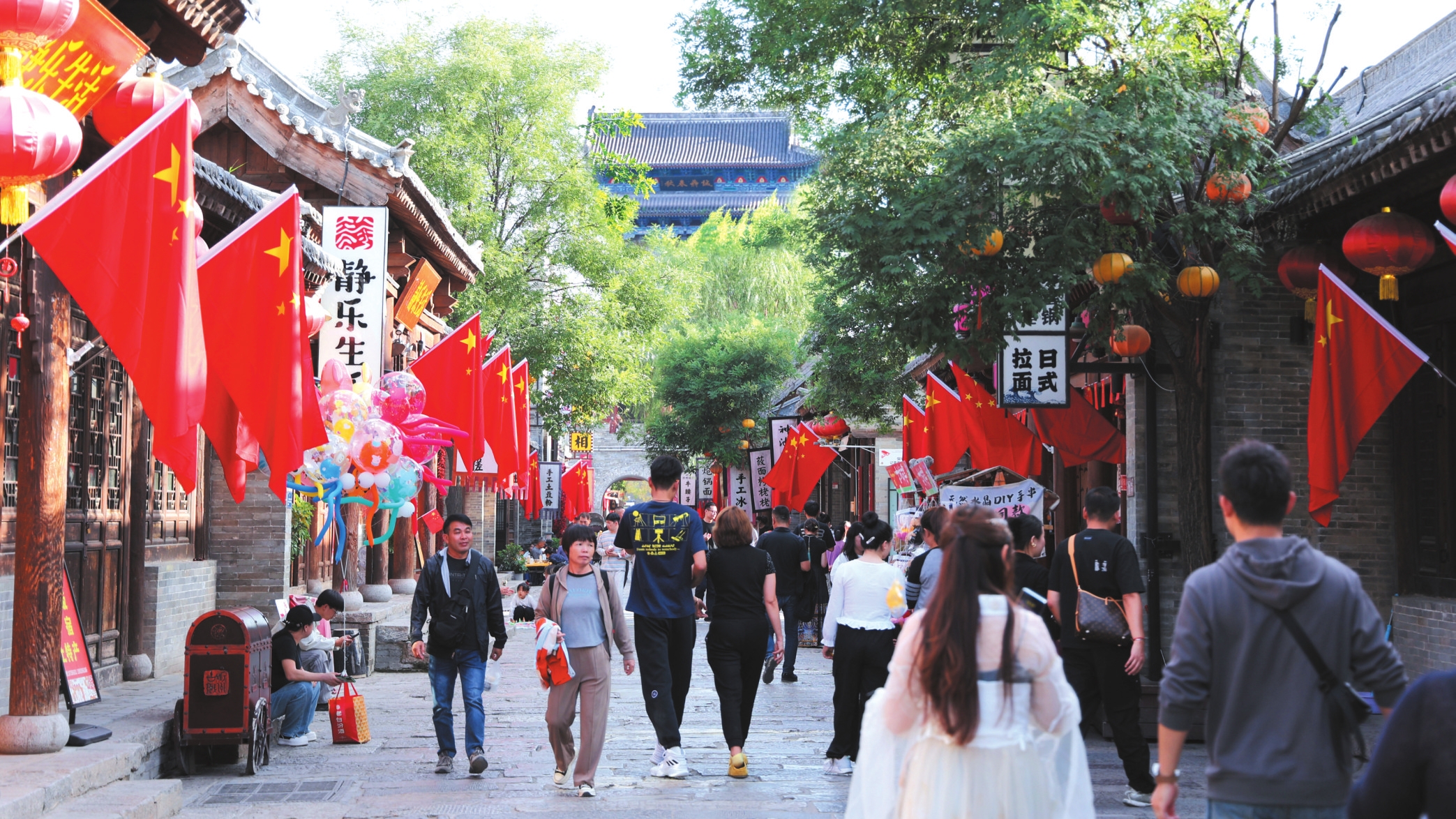 国庆假日期间,忻州古城处处国旗飘扬。 本报记者 范 琛摄