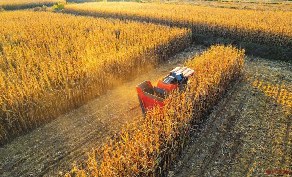 近日,原平市崞阳镇下韩村村民正在紧张有序地抢收玉米,确保秋粮颗粒归仓。 (