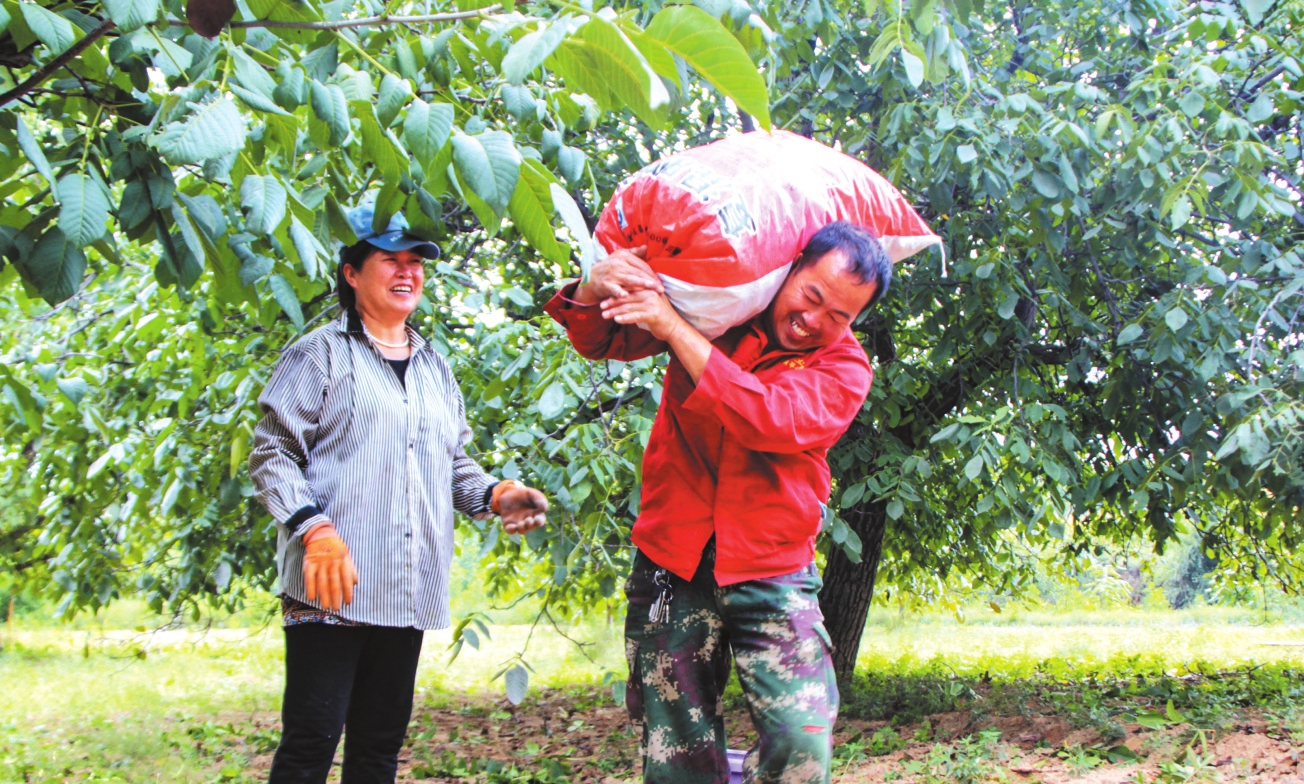 原平市云水镇北岗村村民采收核桃。吉建平摄