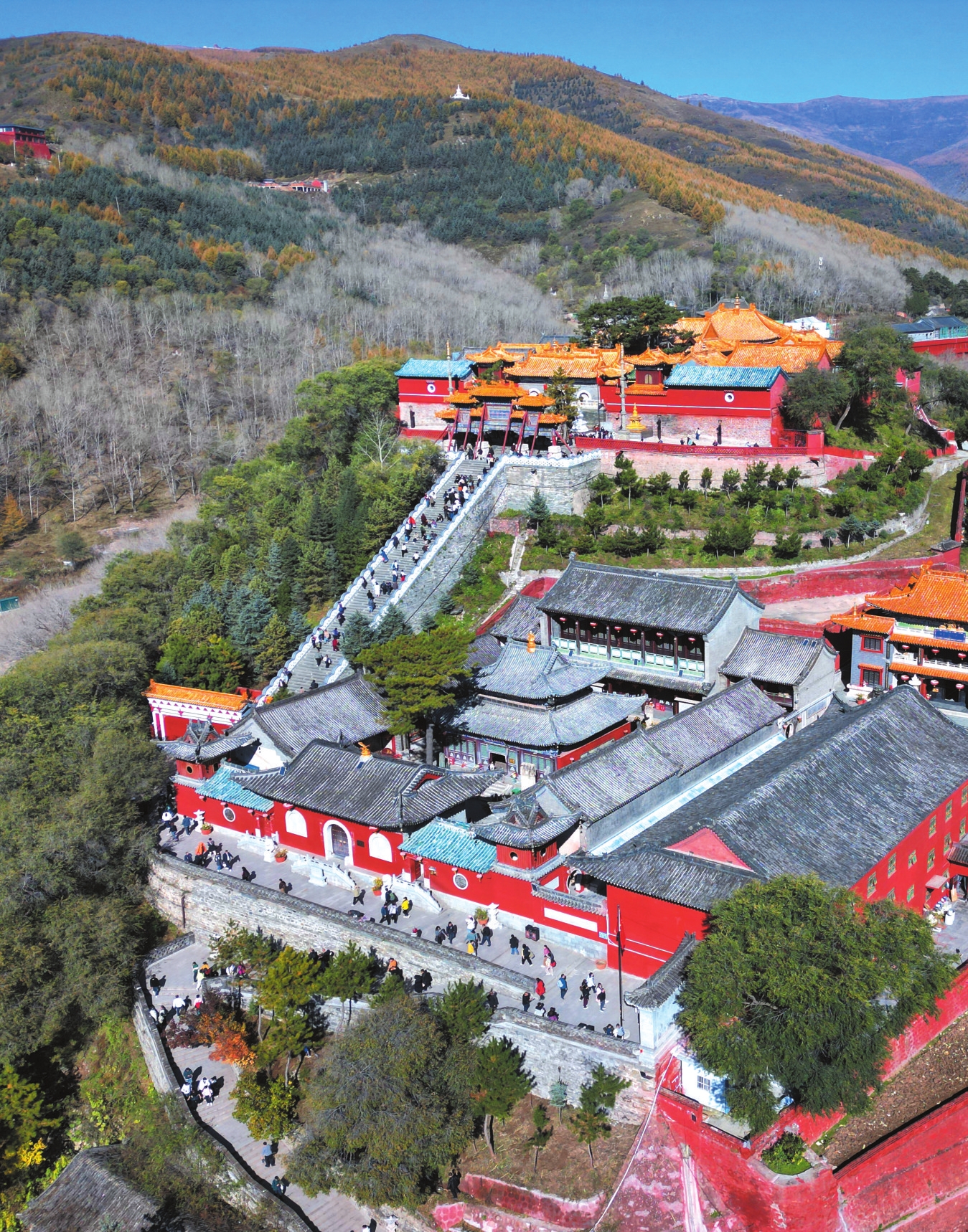 秋季已近尾声,五台山的秋色却进入最绚烂的篇章。漫山松柏与阔叶林褪去翠绿,换上金色、赤红与橙黄的华服,与千年古刹的红墙黛瓦相映成景,吸引海内外游客共赴这场秋日禅意之约。