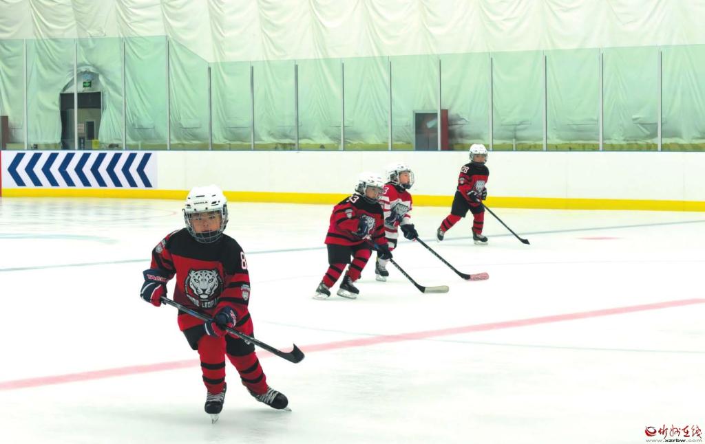 10月31日,忻州市云中河冰雪运动中心的室内滑冰馆内,一群孩子正在进行冰球训练,尽享冰雪运动带来的乐趣与魅力。 (