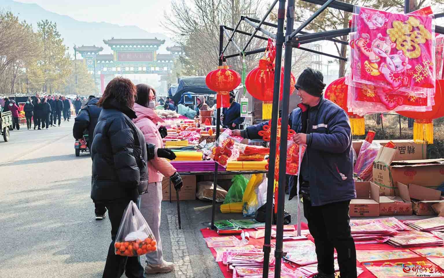 腊月时节,定襄县河边镇年货大集迎来采购高峰。集市上各类年货琳琅满目,村民们穿梭其间,购买年节食品、干货副食,讨价声与欢笑声交织,市井烟火中洋溢着浓浓的新春气息。图为村民在集市选购年货。(张锦娟摄)