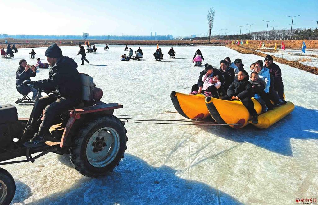 春节假期,原平市滨河滑雪场迎来持续客流高峰,人们在冰天雪地中度过美好时光。(