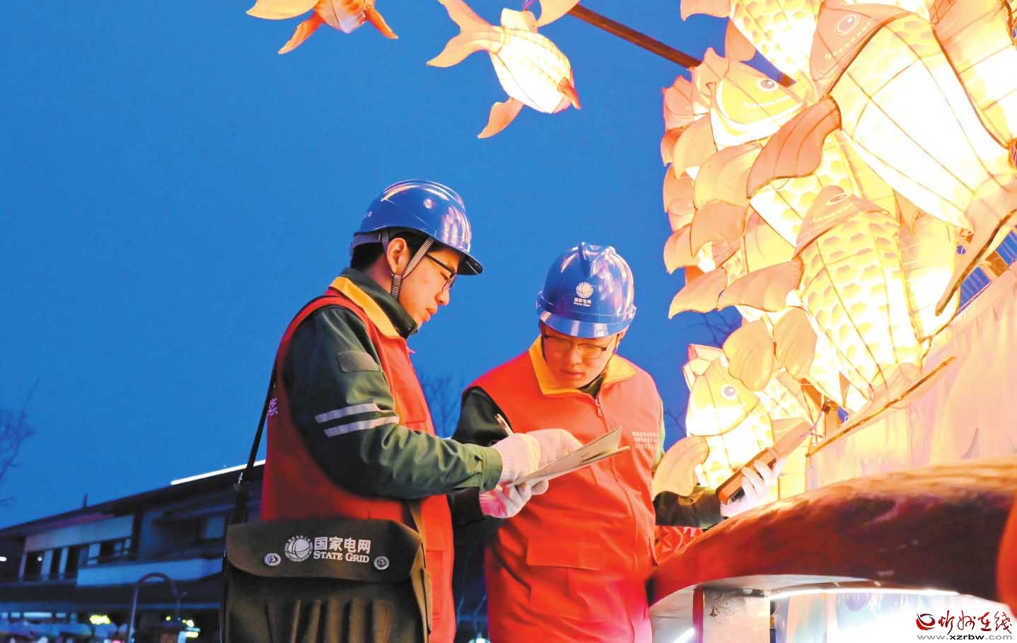为保障节日期间景区可靠供电,国网忻府区供电公司组织员工在云中河景区巡检线路,主动服务,守护万家灯火。(