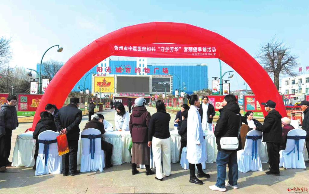 “三八”国际劳动妇女节当日,市中医医院在城区体育场组织开展“守护芳华”关爱妇女健康主题活动。该院15位医生为150余名妇女提供了宫颈癌早筛科普宣教及拔罐、刮莎等中医特色护理技术。图为活动现场。(王金龙 摄)