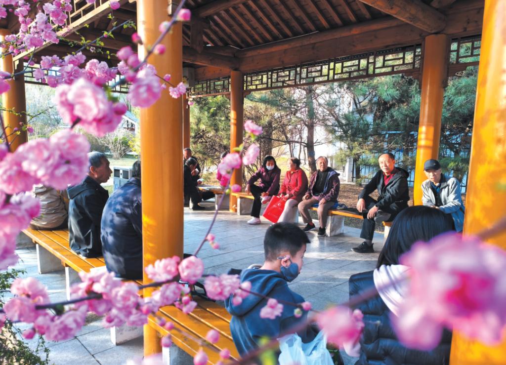 市民漫步遗山公园乐享春光。范琛摄