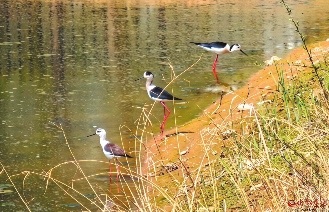 据悉,黑翅长脚鹬是鸻形目反嘴鹬科长脚鹬属鸟类,因其体态修长、姿态优雅,亦有“红腿娘子”的美誉。它们多栖息于湖泊、沼泽等淡水湿地环境,以软体动物、鱼虾、甲壳类为食,是湿地生态系统的重要成员。更重要的是,黑翅长脚鹬对生存环境要求高,是水生环境变化的指示性物种之一。