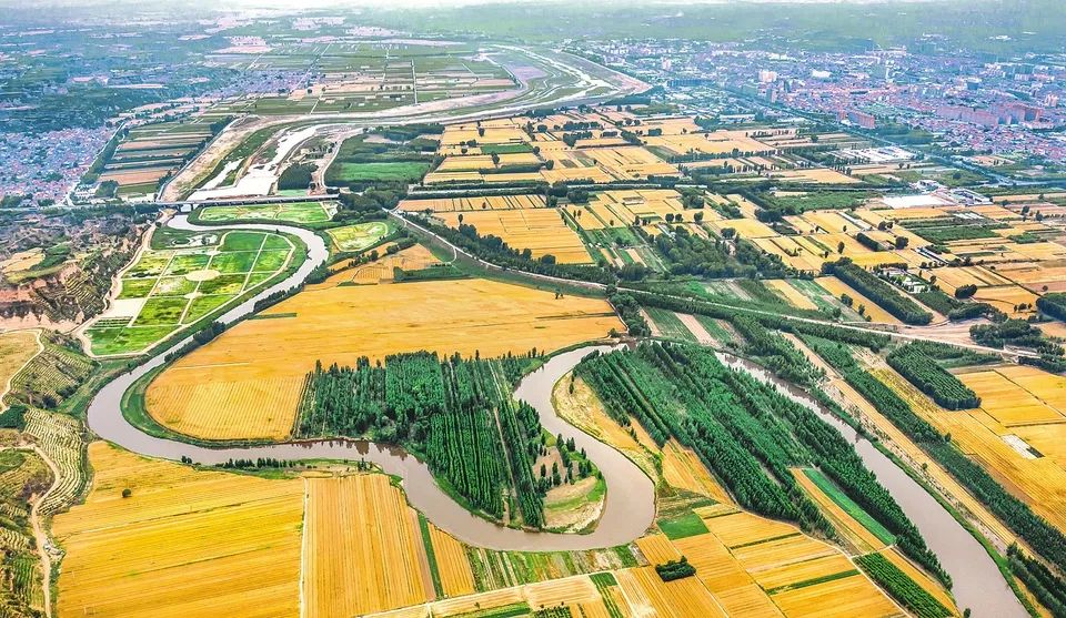 汾河稷山段弯曲的河道似舞者的飘带飞舞在河东大地。薛俊摄