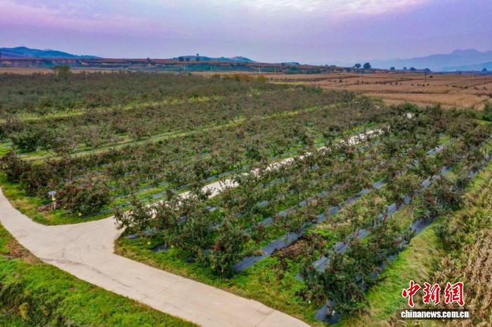 红彤彤的苹果如霞似火,为昔日荒山披上“红妆”。 王晨 摄