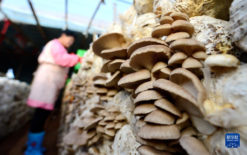 12月6日,在邯郸市肥乡区毛演堡镇路堡村,菇农在采摘菌菇。(新华社记者 王晓 摄)