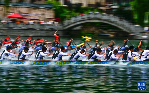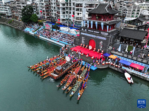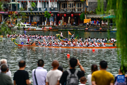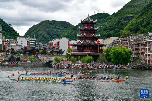 7月22日,2025年民体杯全国龙舟比赛在贵州省黔东南苗族侗族自治州镇远古城开幕。来自全国各地的10支龙舟队伍同场竞技,在镇远古城的㵲阳河上参加为期两天的水上竞速。赛事期间同时举办非遗展演、“龙神嫁妹”主题巡演等丰富多彩的活动。