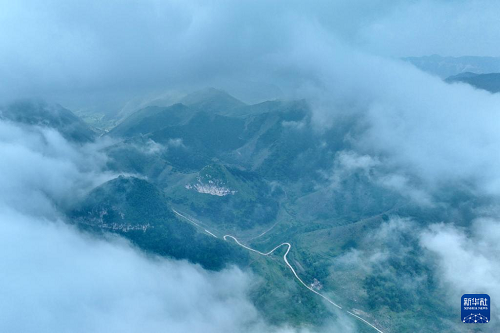 这是河北省邢台市西部太行山区云海景观(7月23日摄,无人机照片)。(新华社记者 牟宇 摄)