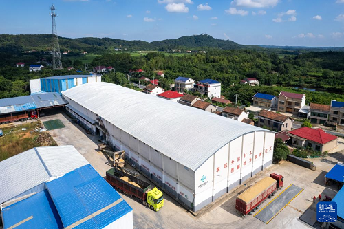 这是7月24日在常德市鼎城区双桥坪镇拍摄的一个水稻烘干工厂(无人机照片)。(新华社记者 周勉 摄)