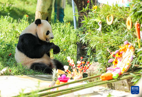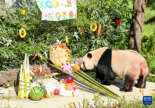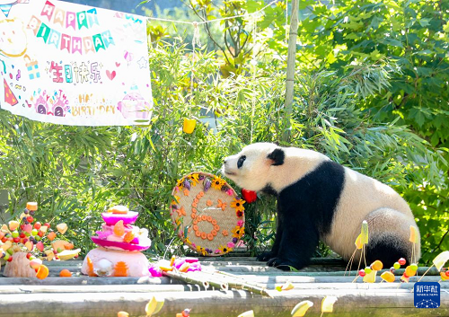 7月27日,大熊猫“林溪”“一家”在四川省广安市华蓥山熊猫苑,分别迎来4岁和6岁生日,饲养员为它俩举行了一场别开生面的生日会。