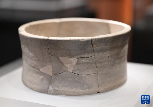 这是一件出土自雄安古州城遗址的战汉时期的陶量(7月28日摄)。(新华社记者 李贺 摄)