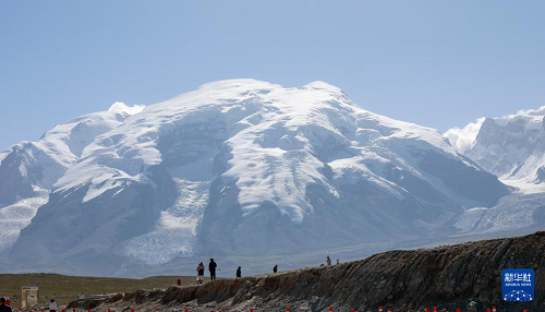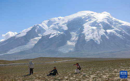 8月3日,游客在新疆塔什库尔干塔吉克自治县慕士塔格冰川公园游玩。(新华社记者 王菲 摄)