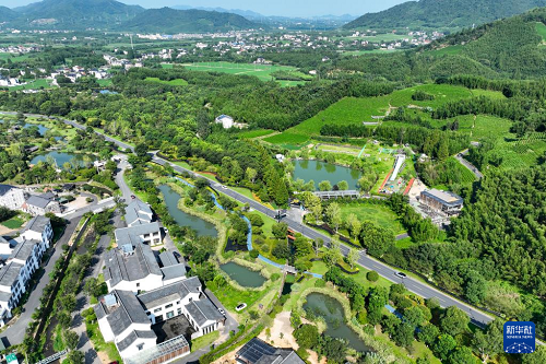 这是8月5日拍摄的浙江省杭州市余杭区径山村景色(无人机照片)。(新华社记者 毛竹 摄)