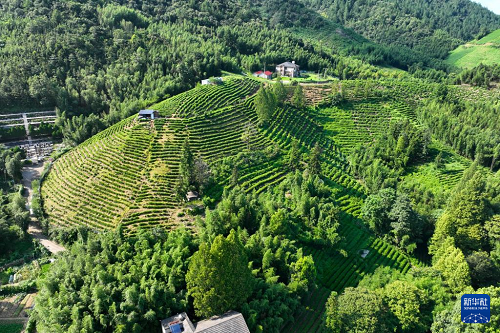 这是8月5日拍摄的浙江省杭州市余杭区径山村茶山(无人机照片)。(新华社记者 毛竹 摄)