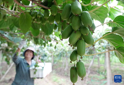 8月12日,果农在河北省卢龙县刘田各庄镇张田各庄村软枣猕猴桃种植基地采摘软枣猕猴桃。(新华社记者 杨世尧 摄)