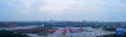 9月3日清晨拍摄的天安门广场。(新华社记者 朱峥 摄)