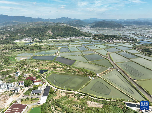 鸟瞰宁海县一市镇的蟹塘(9月2日摄,无人机照片)。(新华社记者 翁忻旸 摄)