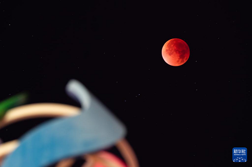 这是9月8日凌晨在云南省蒙自市拍摄的“红月亮”。(新华社记者 高咏薇 摄)