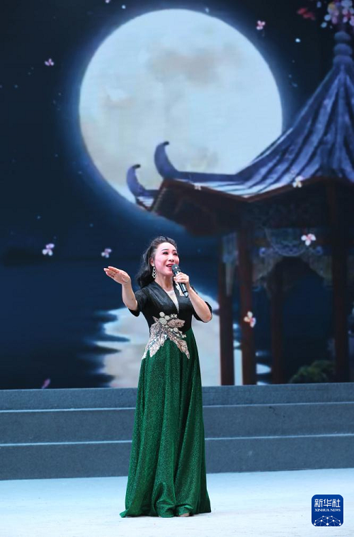 9月13日晚,在定西市陇中许铁堂秦腔剧院,演员演唱黄梅戏《孔雀东南飞》。(新华社发 王克贤 摄)