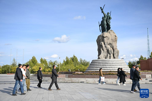9月18日,人们在内蒙古呼伦贝尔市海拉尔区世界反法西斯战争海拉尔纪念园参观。(新华社记者 贝赫 摄)