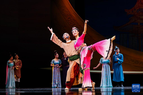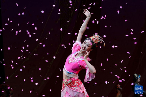 9月20日晚,演员在敦煌大剧院表演新版《丝路花雨》。(新华社记者 郎兵兵 摄)