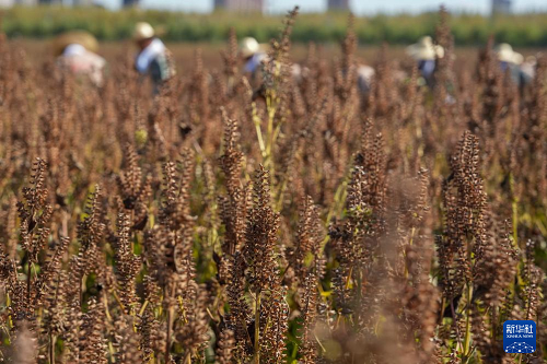 9月23日,黑龙江省佳木斯市桦南县举办庆祝中国农民丰收节活动,工作人员进行紫苏收获展示。(新华社记者 王建威 摄)