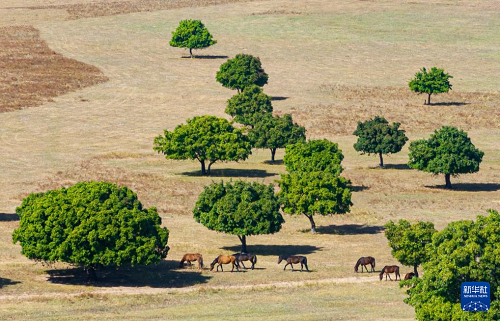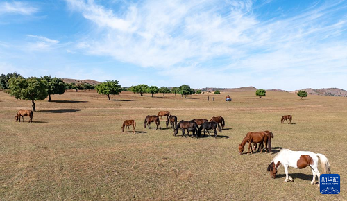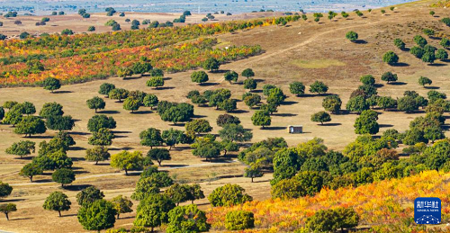 9月27日拍摄的兴安盟科尔沁右翼中旗五角枫生态旅游景区秋景(无人机照片)。(新华社记者 贝赫 摄)